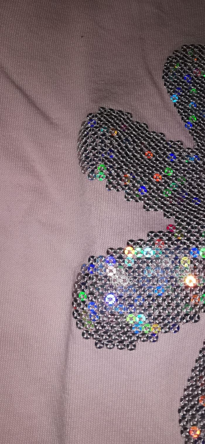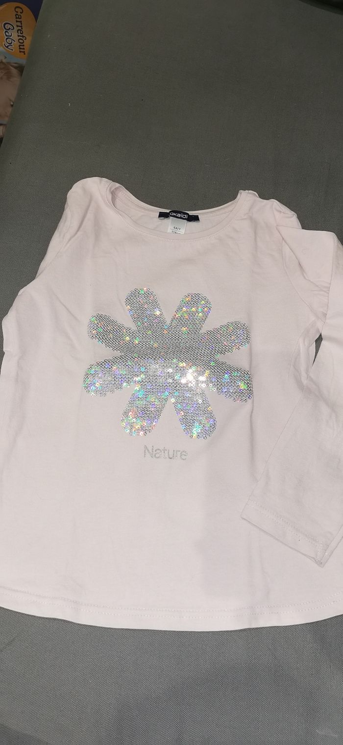 Tee shirt manche longue rose pâle avec fleur en sequins brillants comme neuf