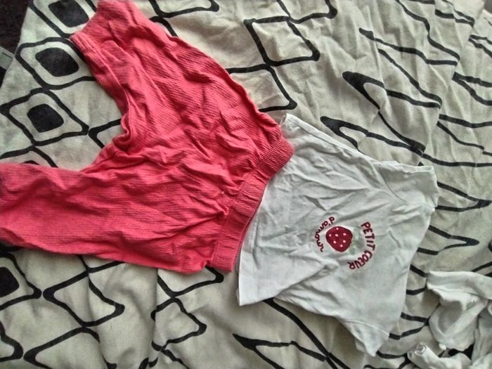Tee shirt 1 mois kiabi Pantalon 3 mois sucre d'orge