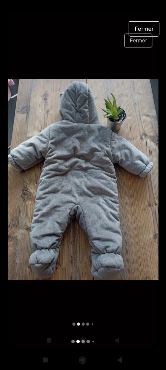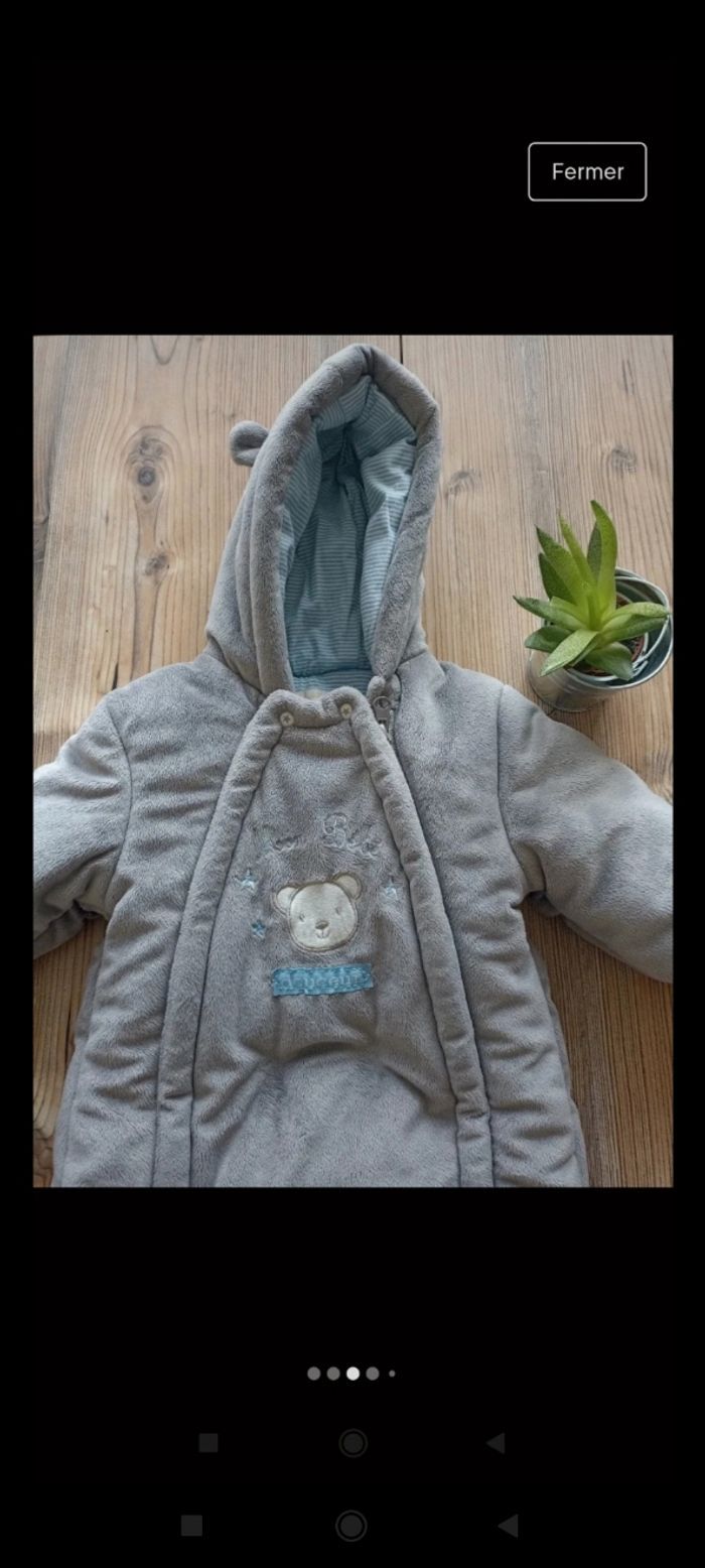 Combinaison pilote bien chaude Gémo 3 mois Avec moufles qui se détachent Fermeture éclair et boutons en haut
