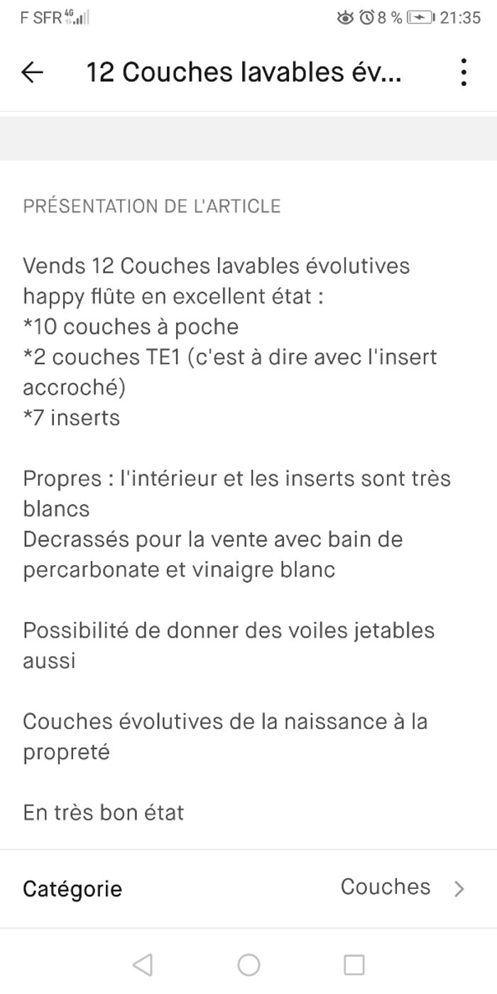 Couches evolutives Marque happy flute En excellent état Voir descriptif détaillé sur la dernière photo
