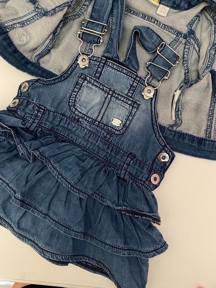 Ensemble robe salopette et veste en jeans - photo numéro 2