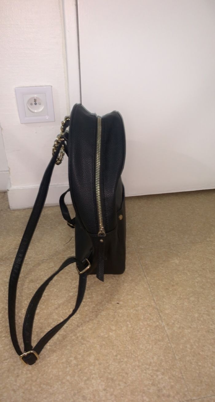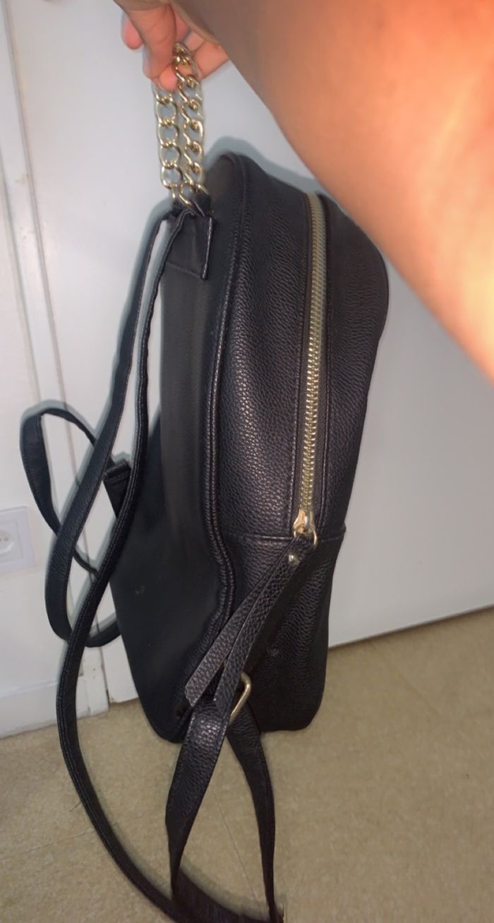 Ptit sac à dos noir en cuire avec une chaîne or , porter deux fois , en très bonne état .