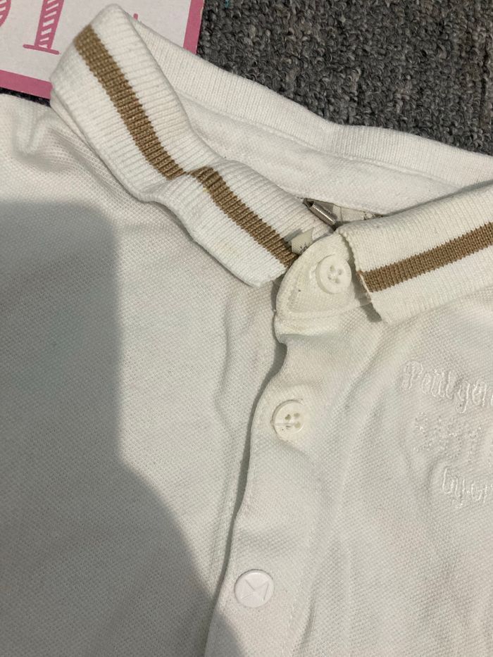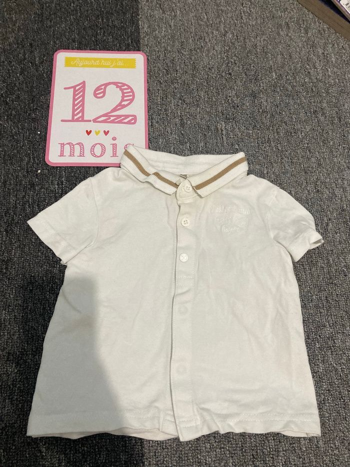 Polo blanc en bon état, légèrement jauni au niveau du col Taille 12 mois