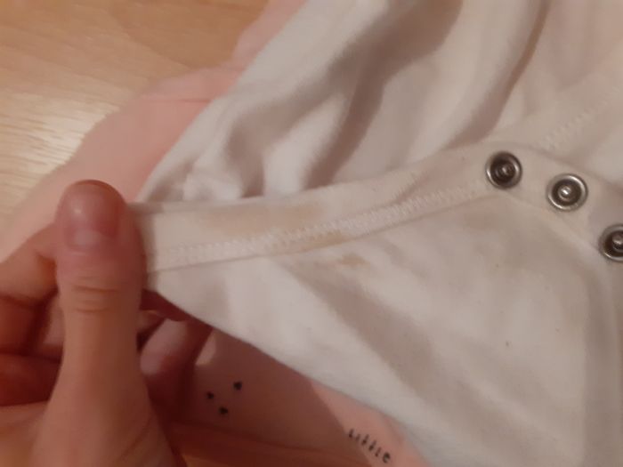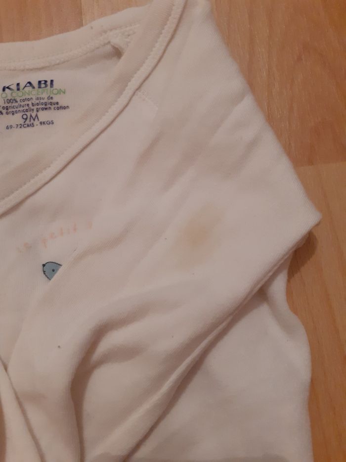 Body manche longue, tâche sur le body blanc. Ne gêne en rien