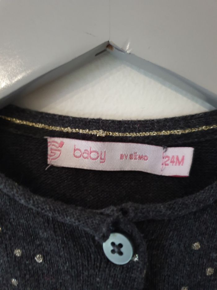 Jolie gilet gris et doré de taille 24mois et de marque baby by gemo très bonne état