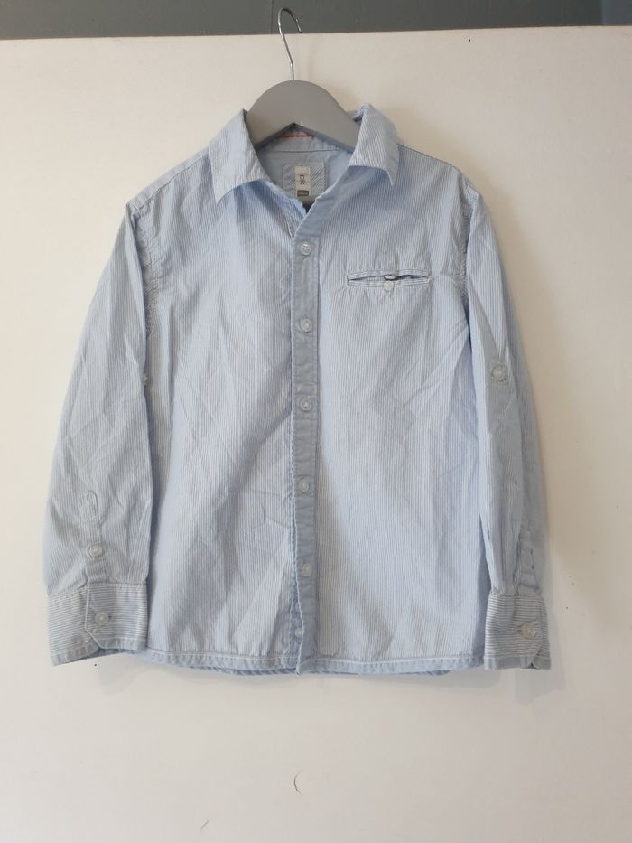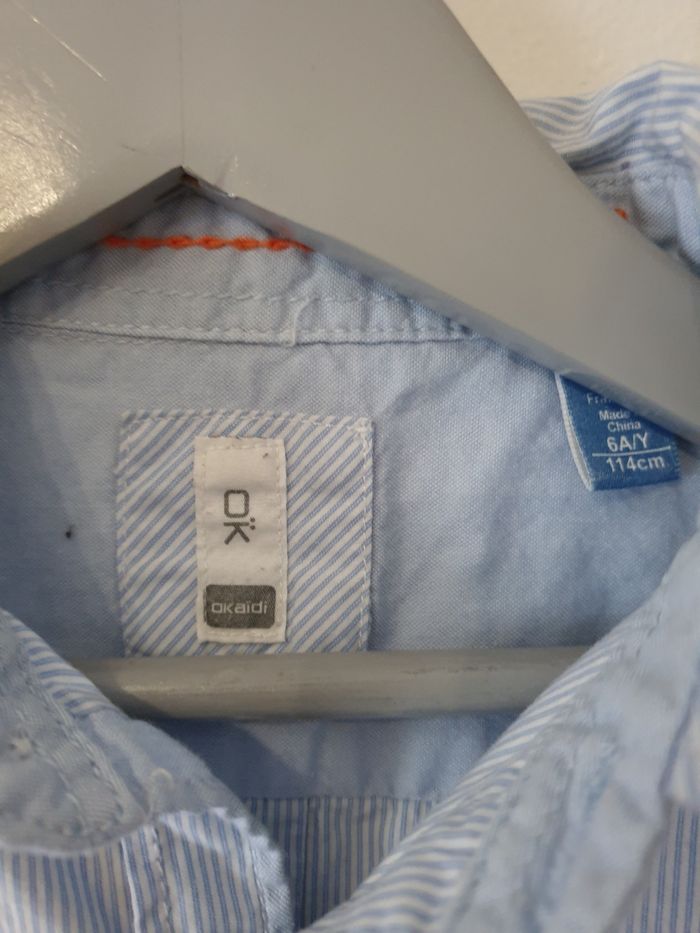 Jolie chemise blanche rayé bleu de marque okaidi taille 6ans très bonne état
