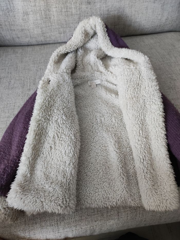 Veste mauve en taille 12 mois bon état. Intérieur fourré Fermeture avec un bouton au niveau du col