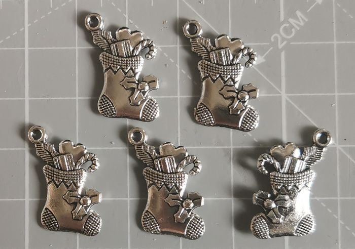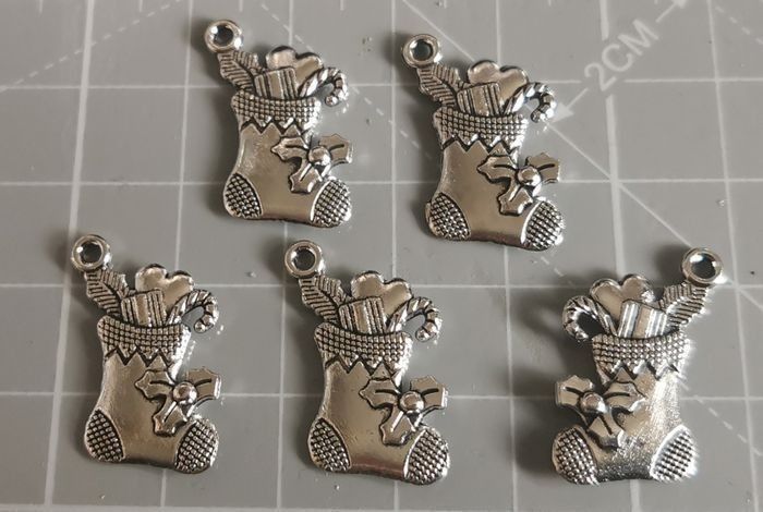 5 Pendentifs "chaussettes de Noël" en métal argenté. - photo numéro 3
