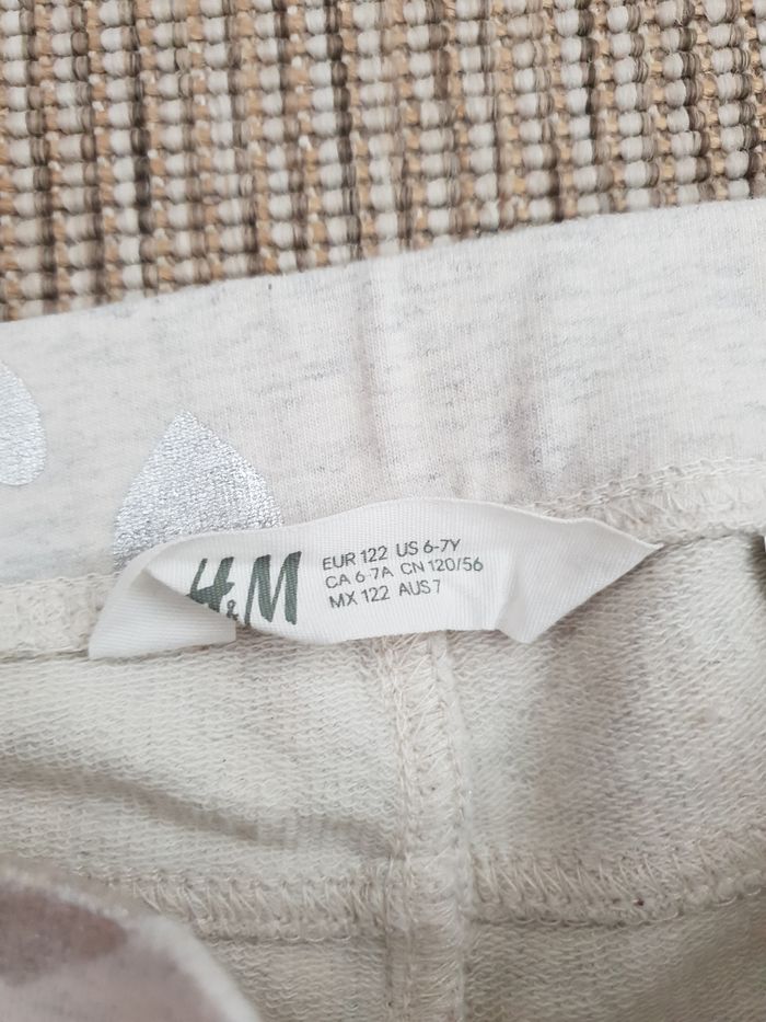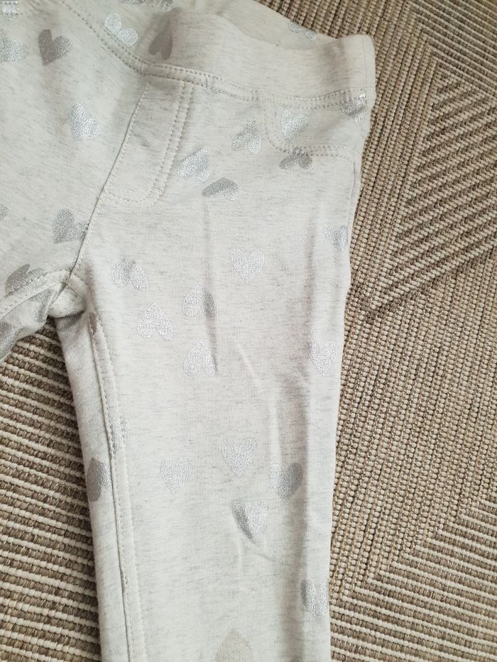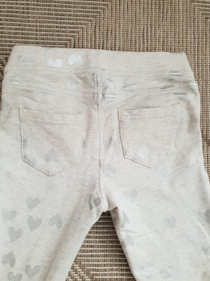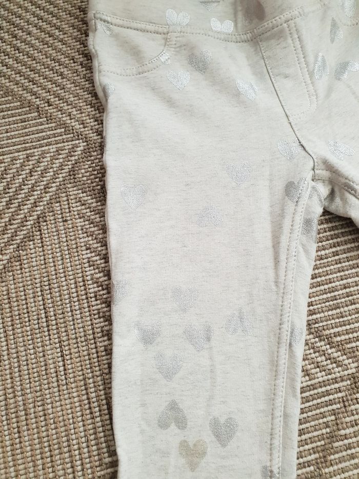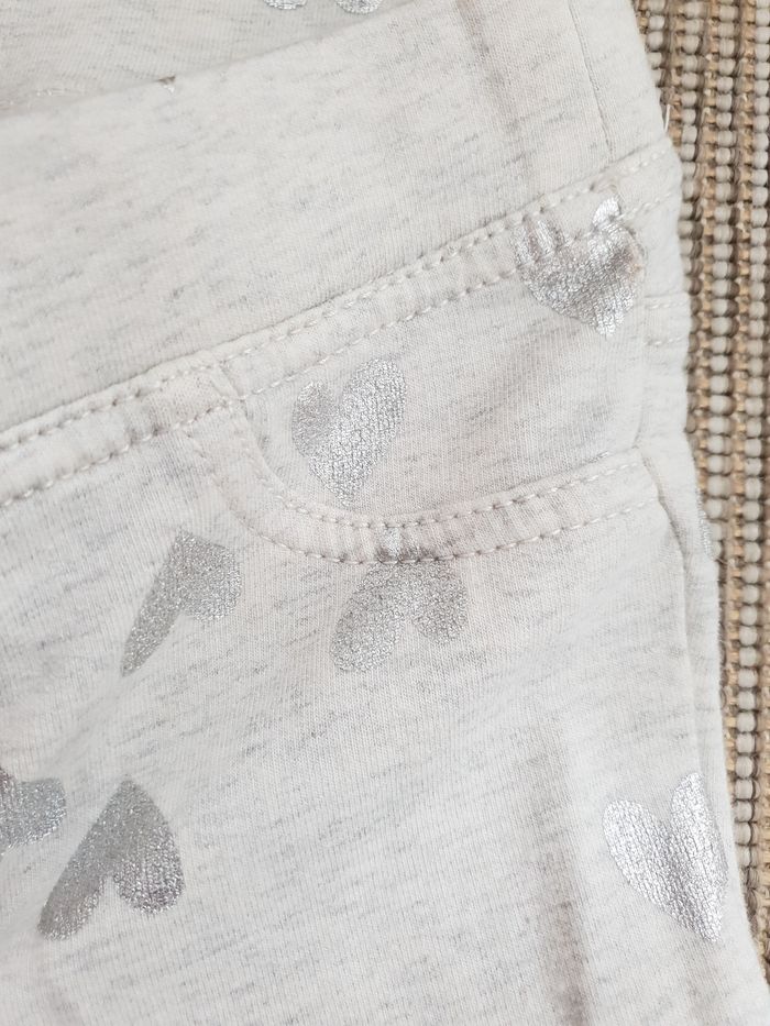 Jeggings en très bon état, marque h&m, beige gris, coeurs argentés Taille 6-7ans