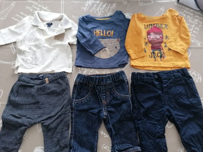 3 pantalons, 1 veste, 1 pull et 8 sweats manche longue taille 3 mois. Plusieurs look à composer. Très bon état.