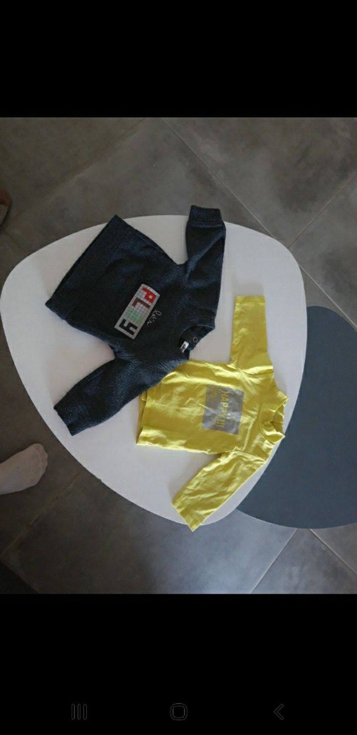 2 hauts manches longues en 3 mois Le vert anis est fin. Le gris est plus épais