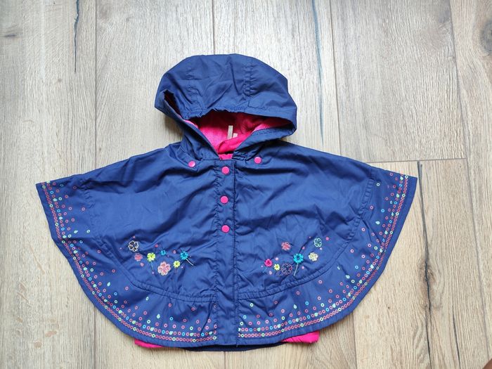 En bon état sauf une pression servant à attacher la partie imperméable à la partie intérieure qui ne tient plus. Ne gêne en rien une fois portée !