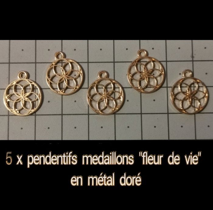 5 x pendentifs "fleur de vie" médaillons en métal doré. - photo numéro 1