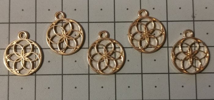 5 x pendentifs "fleur de vie" médaillons en métal doré.