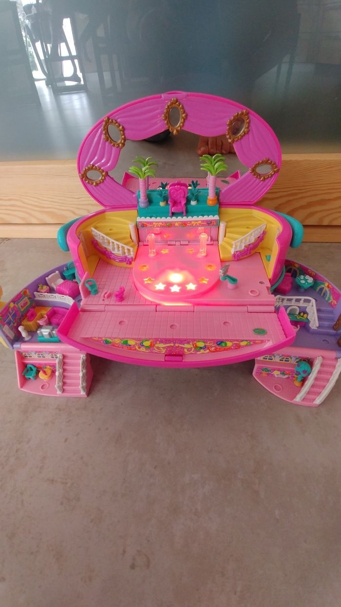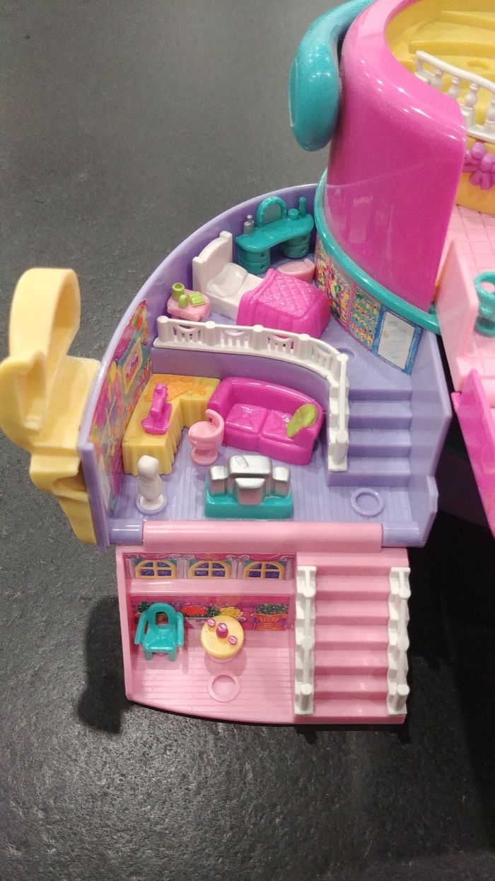 Polly Pocket vintage Blue Bird scène lumineuse avec de nombreuses zones de jeux. Gros Polly Pocket avec poignée transportable très bon état avec ses deux personnages d'origine un troisième personnage ajouté et petits accessoires