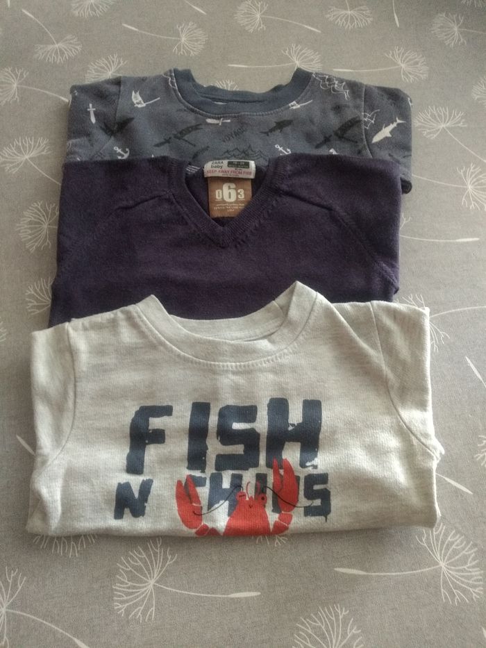Lot de 3 pulls. Taille : 2 en 92 et 1 en 86 (correspond à un 92). Bac 4.