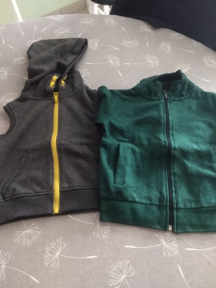 Lot de 2 pulls à capuche (dont 1 sans manches). Taille 92. Bac 4
