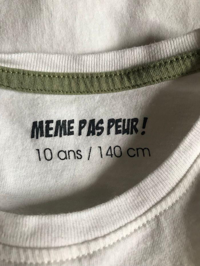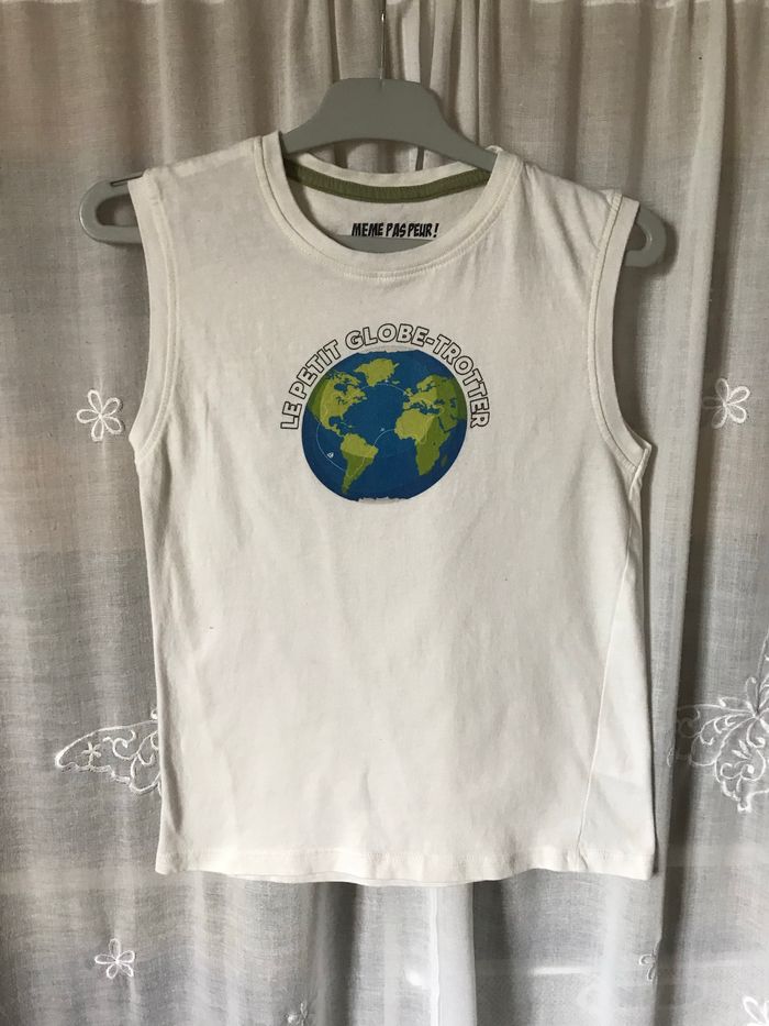 T-shirt blanc sans manche imprimé terre globe trotter Taille 10 ans 140 cm Même pas peur