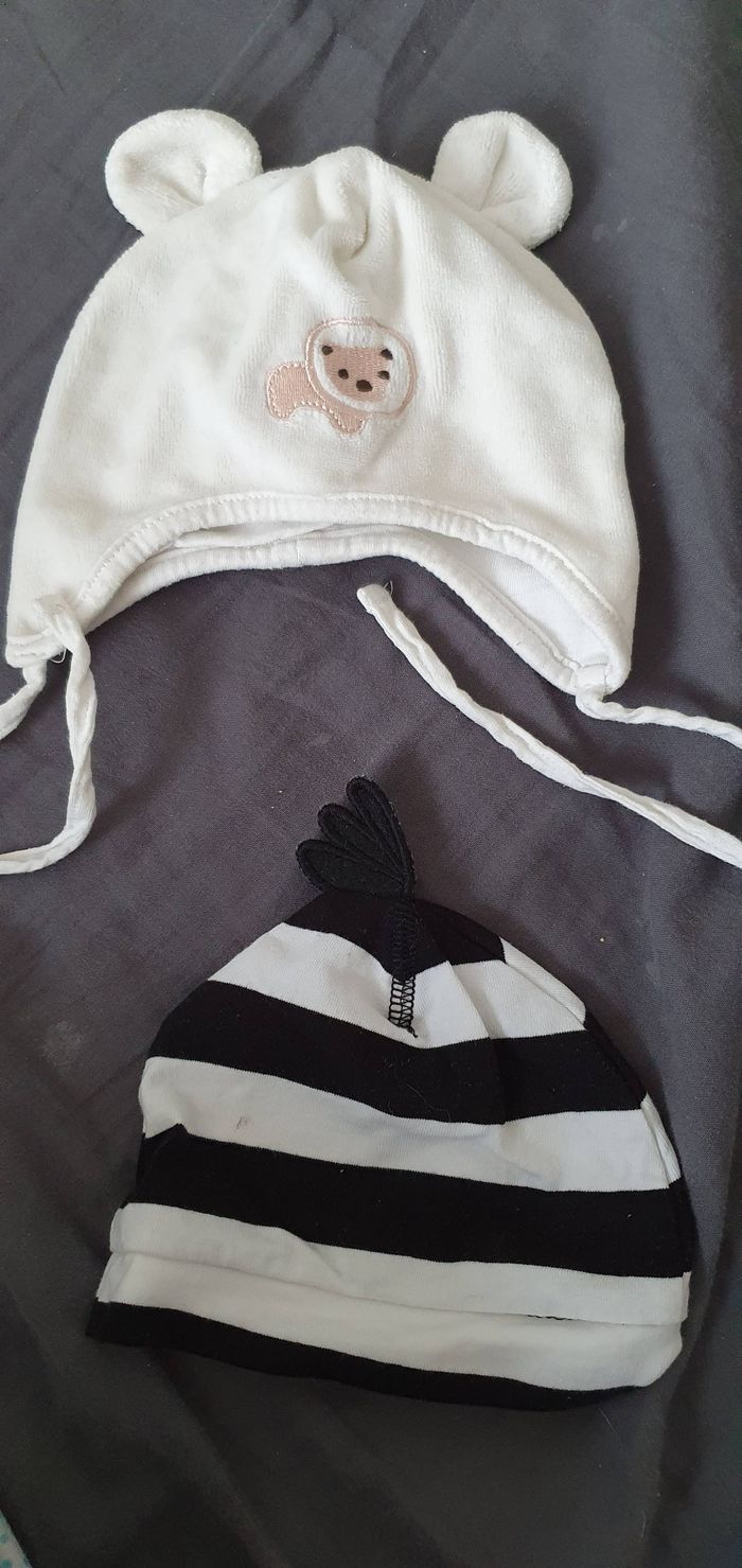 /Bonnet neuf jms mis qui taille 0-1 mois. Le bonnet rayé est un H&M