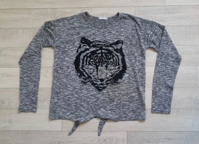Tee-shirt manches longues gris avec une tête de tigre, en très bon etat. Taille 14 ans 3 €