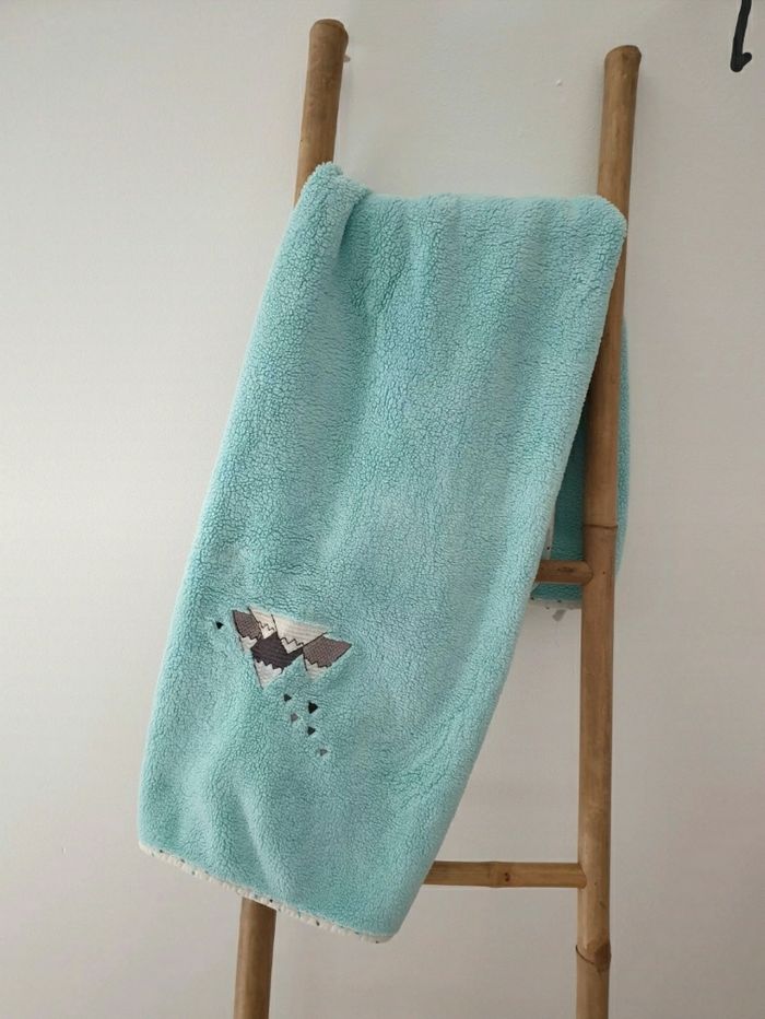 Plaid Couleur bleu clair Marque coton carré Paris Mesure 100 cm Pas de tâche