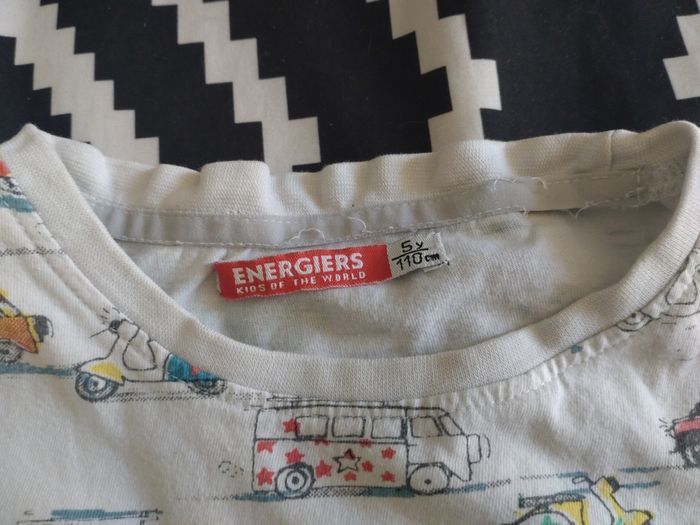 T-shirt manches courtes avec des dessins de véhicules sur le devant et dans le dos. Taille 5 ans / 110 cm
