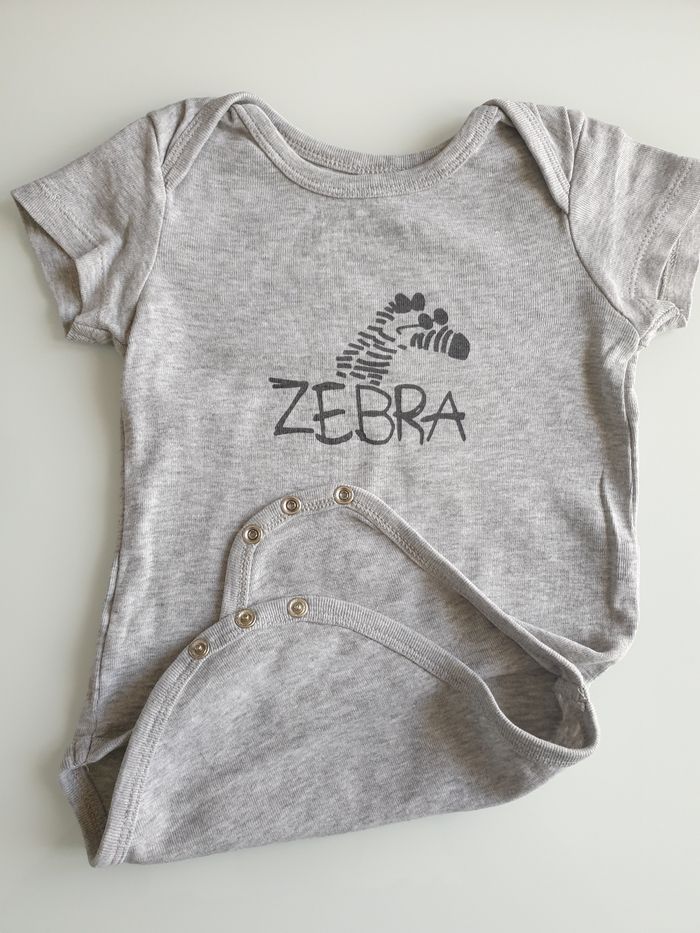 Lot de trois bodies Marque la redoute Couleur blanc/gris/ Avec dessins zèbre Taille 18 mois 81 cm Manches courtes