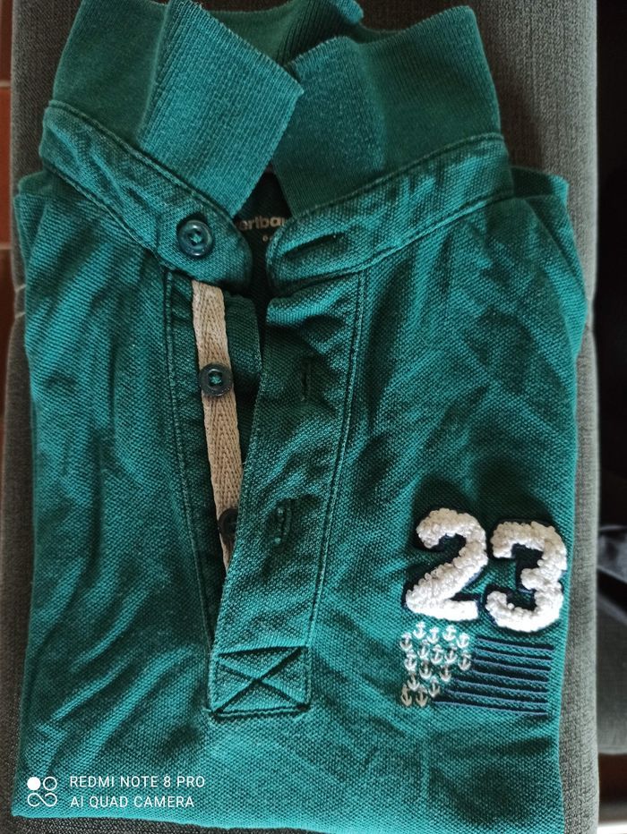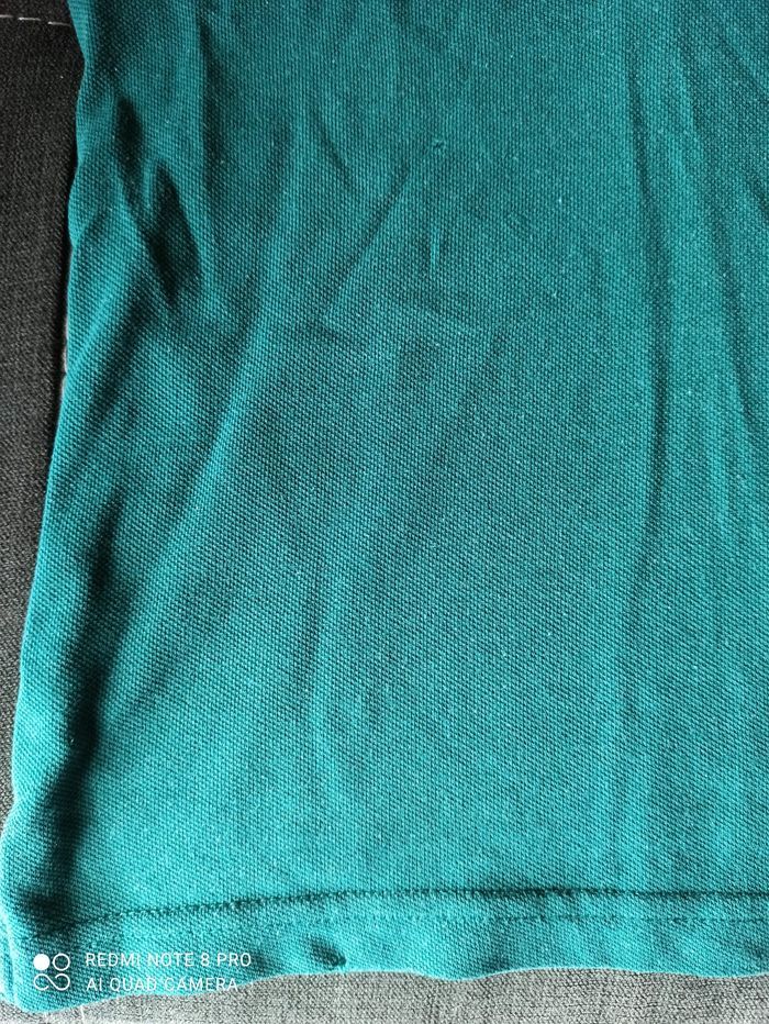 Polo vert 6 ans. Quelques bouloches et 2 petits trous devant (3eme photo).