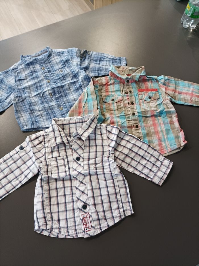 Lot de 3 chemises très peu porté. Taille 6 mois. Okaïdi, tape à l'oeil...