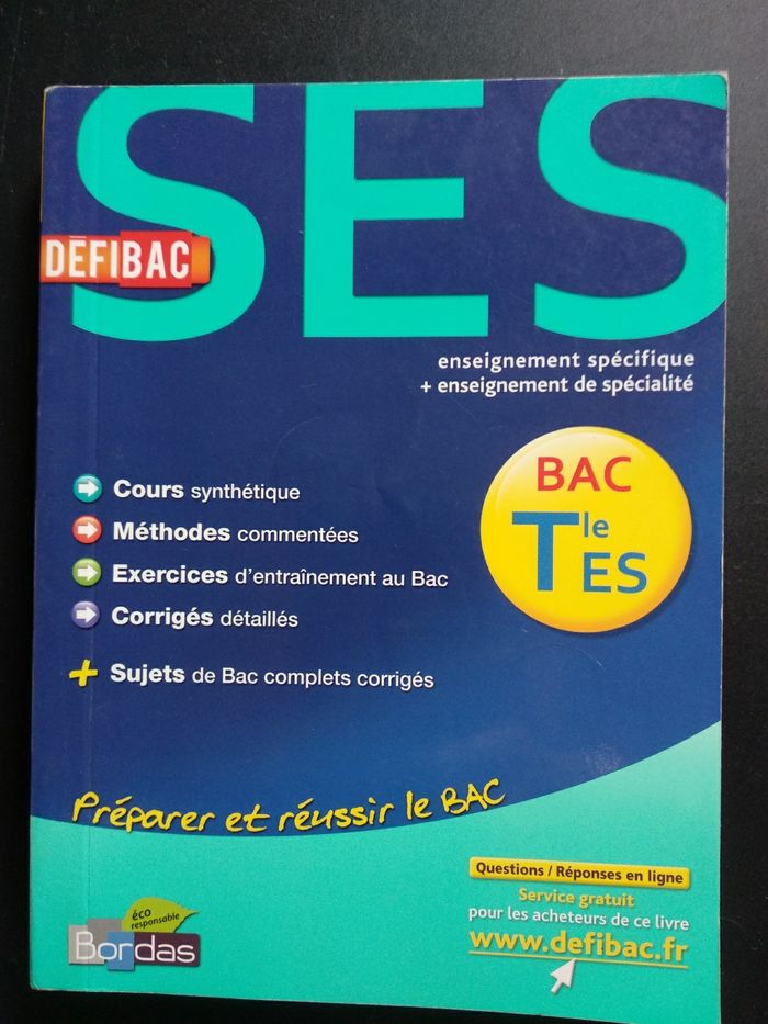 Livre Defibac SES Terminale ES