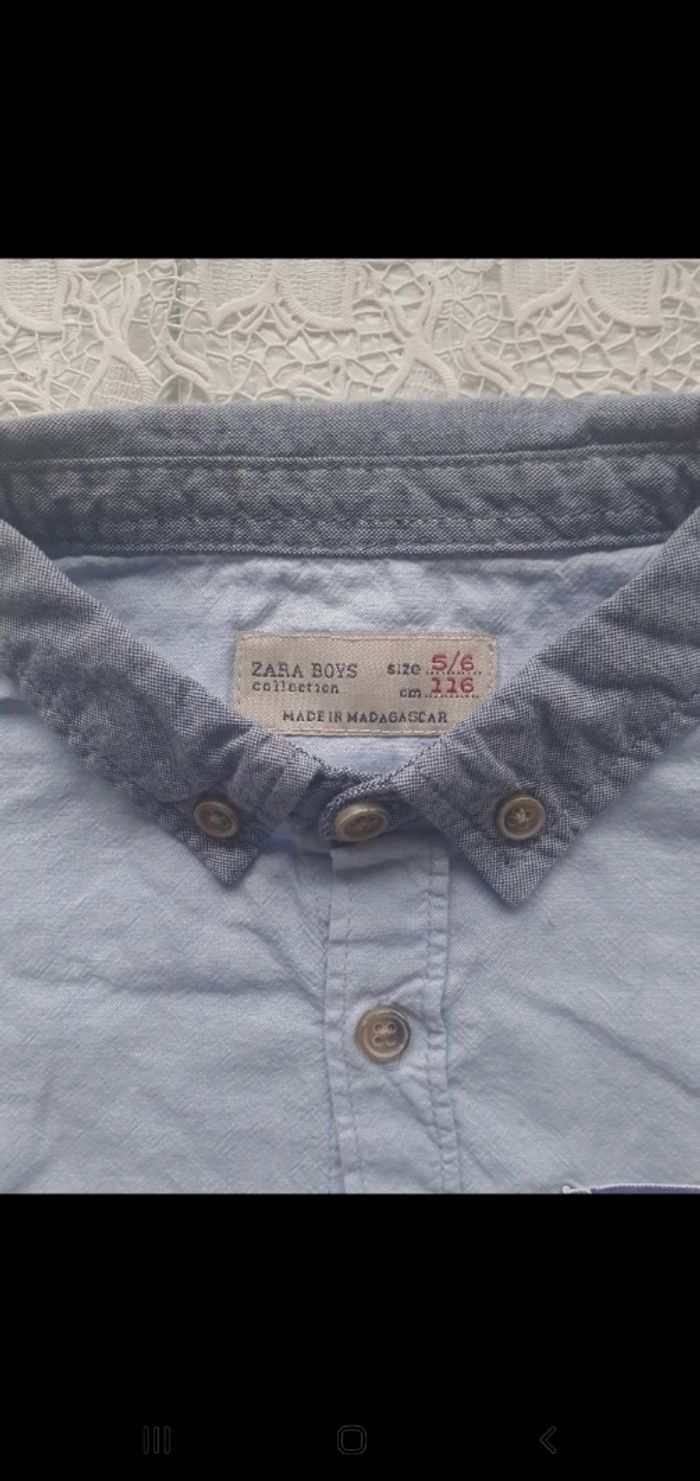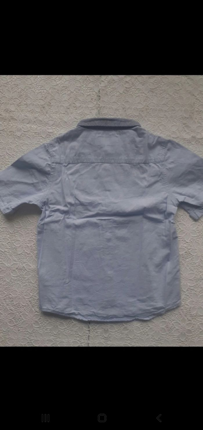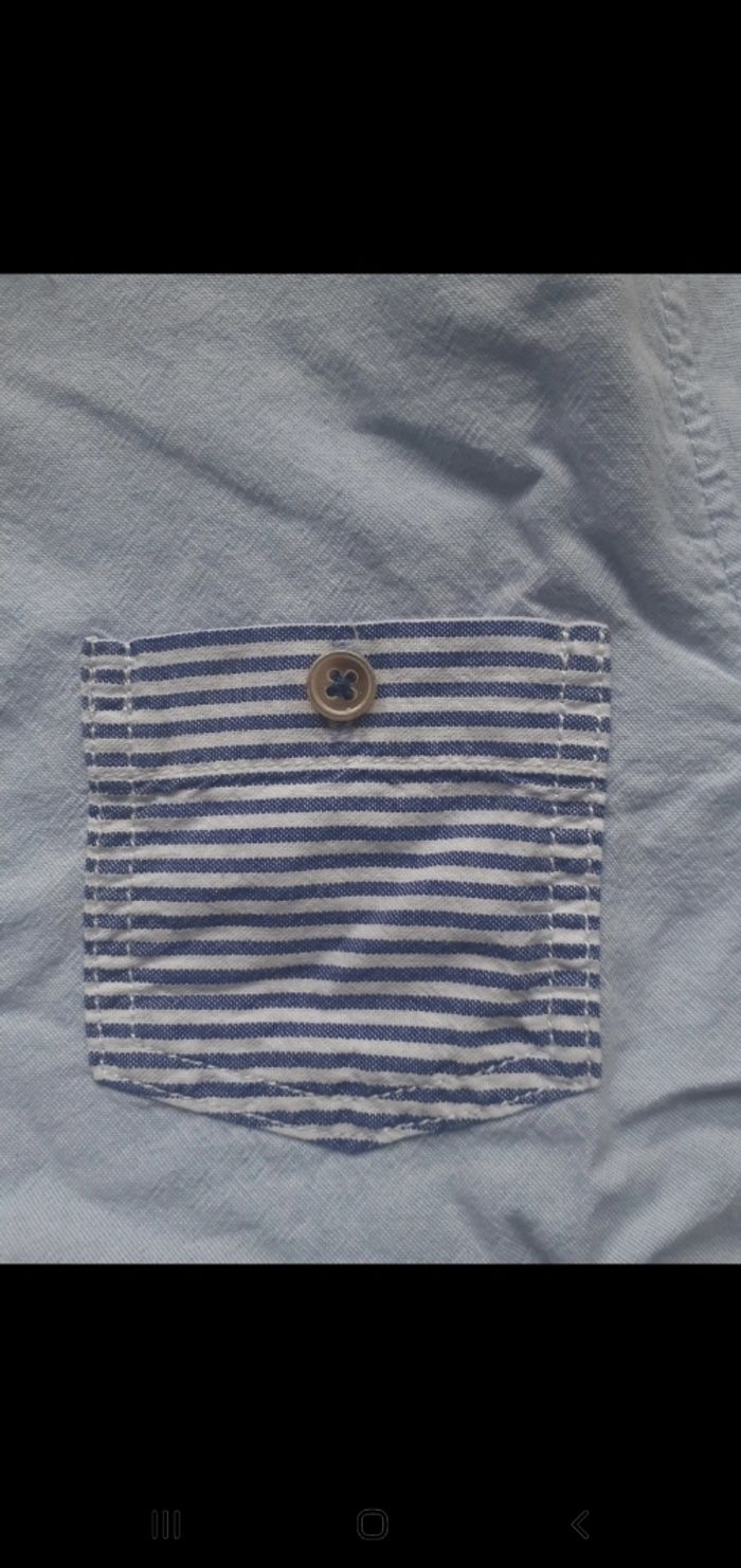 Ferme avec 5 boutons. 2 boutons pour maintenir en place le col. 1 bouton sur la poche de la poitrine. Manches court. Taille: 5/6 ans. Pas de trou, ni de tâches.