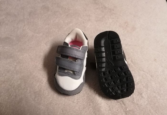 Basket bébé filles, authentique Nike . Pointure :18.5 Gris /blanc /noir /rose. Fermeture scratches. Neuf jamais porté. 15€