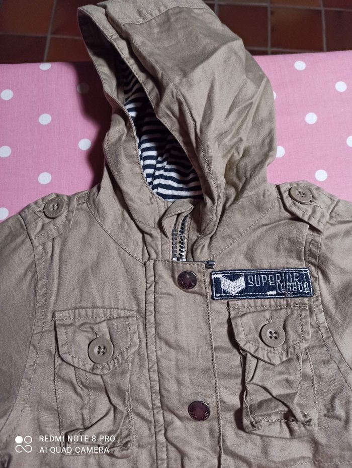 Veste avec capuche, marque pumpkin patch, taille 6/12 mois. Manque un bouton sous le bras droit