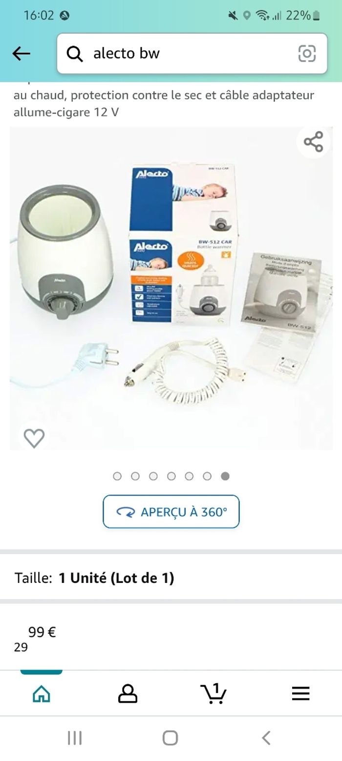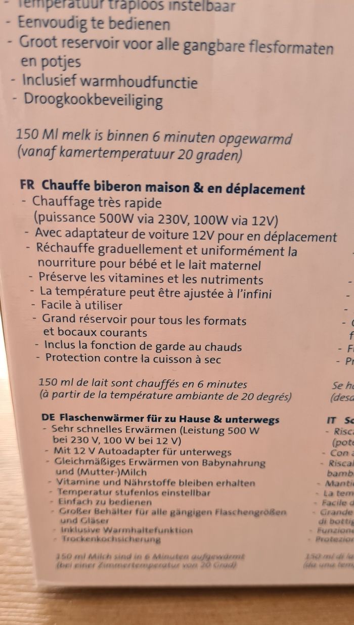 Chauffe biberon alecto, servit 2 fois. Excellent état. Se branche sur secteur ou allume cigare. Idéal pour les balades en voiture. Peut convenir pour les biberons ou les petits pots. Actuellement valeur neuve 29,99e