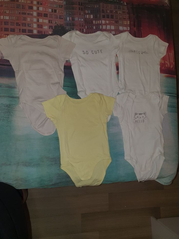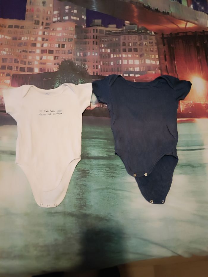 Lot de 6 bodies manche courte le jaune tâché voir photo je donne le bleu la couleur délavé
