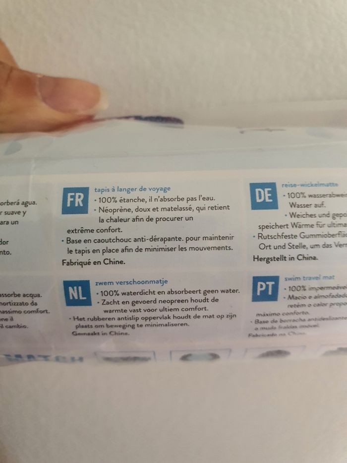 Tapis à langer nomade en neoprene. Pas eu l'utilité cet été. Autres articles BM dans mon dressing.