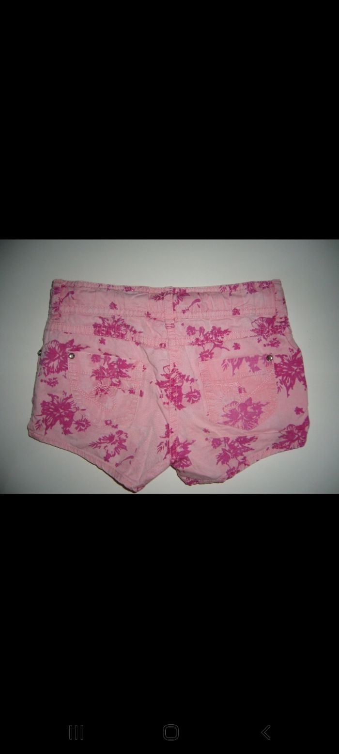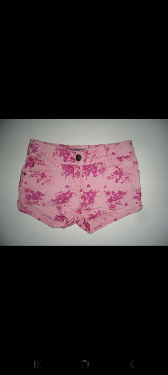 short court pour mi saison/été, en coton, rose et fushia à motifs fleurs, taille réglable par boutons à l'intérieur, fermeture éclaire et crochet devant, 2 poches devant et 2 à l'arrière, marque: ORCHESTRA, pour fille taille 5ans 110cm, très propre PROCHE DU NEUF, sans aucun trous ni taches