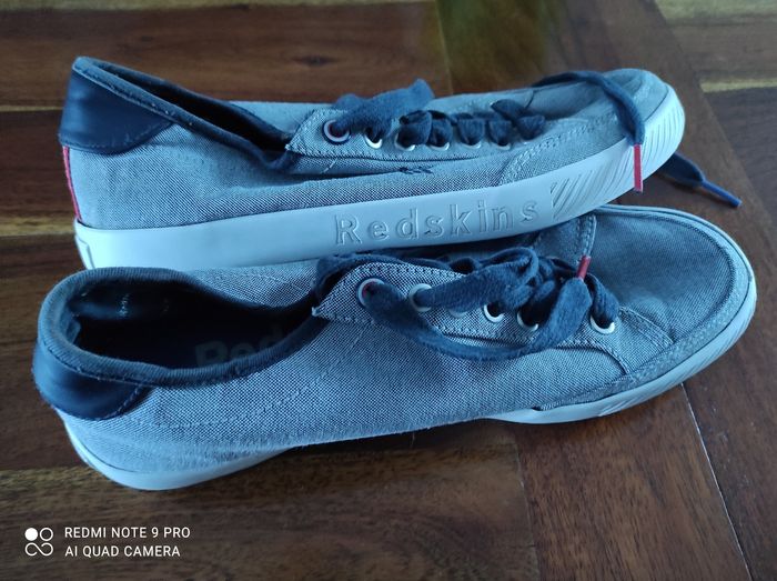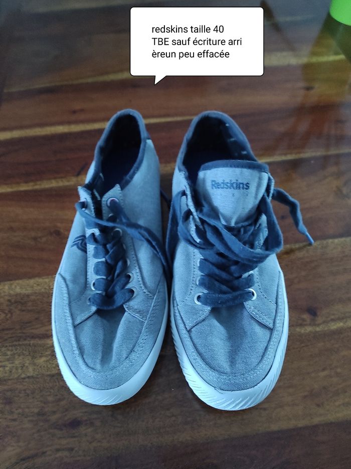 Bonjour Vends tennis toile redskins en très bon état ( Juste écriture arrière effacée par endroit) Bonne journée