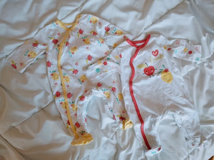 2 pyjamas fins Ouverture devant et entre les jambes Portés 1 fois