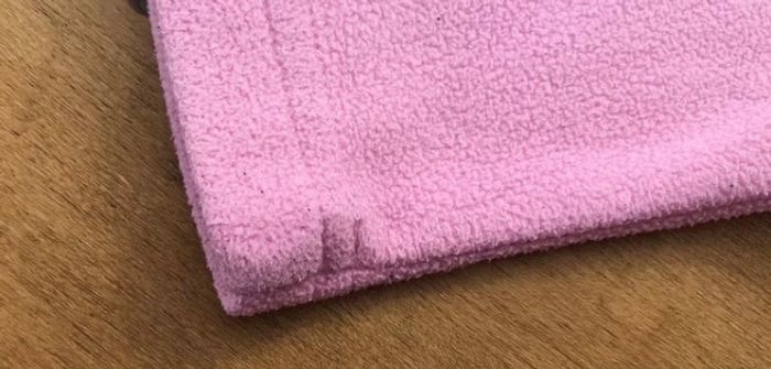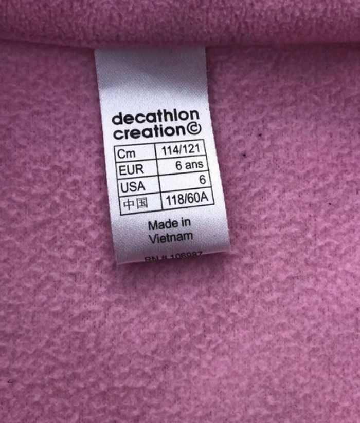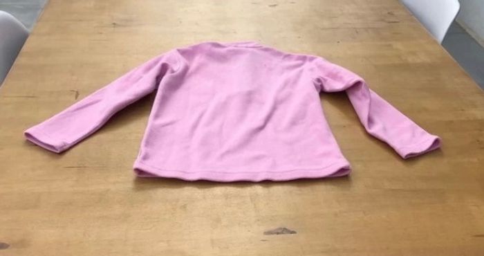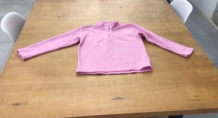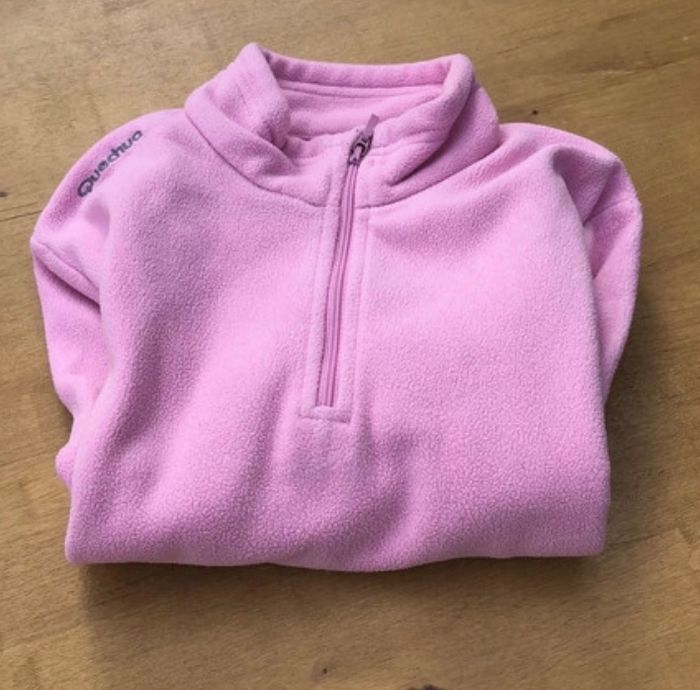 Sweat polaire rose clair avec fermeture eclair à la tête pour faciliter le passage de la tete Petite tache à la manche « voir photos »