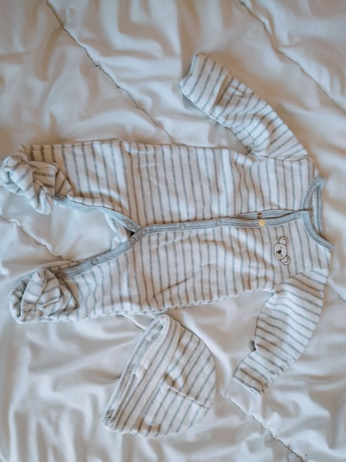 Avec bonnet Ouverture sur le devant et entre les jambes Le bout des manches se retourne pour garder les mains de bébé au chaud ou l'empêcher de se griffer