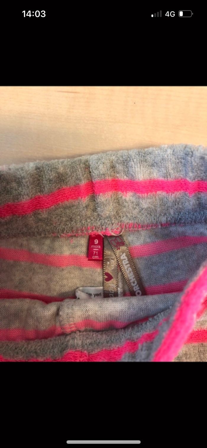 Vends short orchestra gris et rose. Etat neuf. Taille 9 mois.