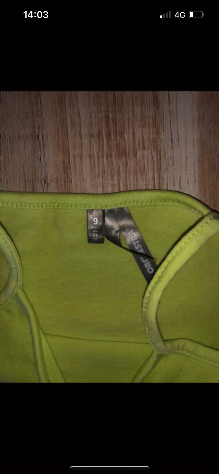 Vends debardeur orchestra vert anis. Etat neuf. Taille 9 mois.