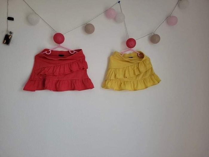 Lot de 3 mini jupe La bleu est une orchestra La rouge et jaune kiabi