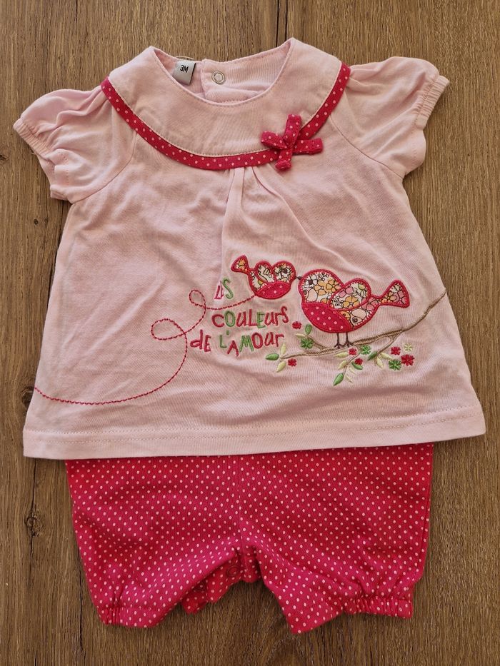Bonjour, Vend un combi en taille 3 mois avec pressions dans le dos et entre les jambes. #Combi #3mois #Pressions #Rose #Oiseau