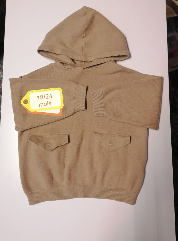 Pull à capuche filles. Marque Zara. Beige 18/24 mois Manches longues. 2 poches devant 51% viscose. 26%polyester. 23%nylon. Porté 2 fois. 12€