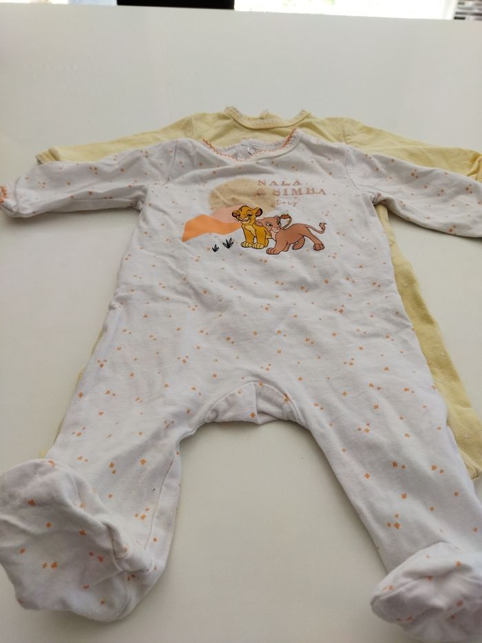 Pygama léger imprimer. Porté quelques fois, en bon état. Marque Disney (le roi lion et Marie des Aristochats). Taille 3 mois