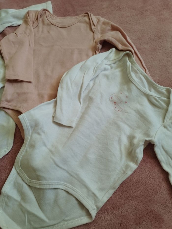 4 bodies 6M dont 2 simples (les roses) et 2 à motifs (les blancs)