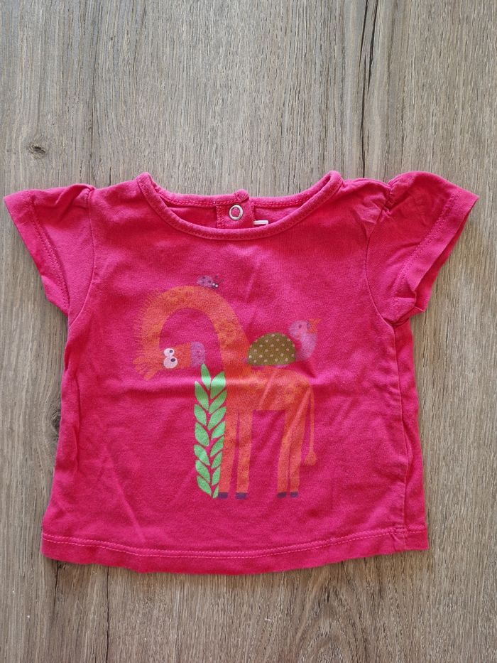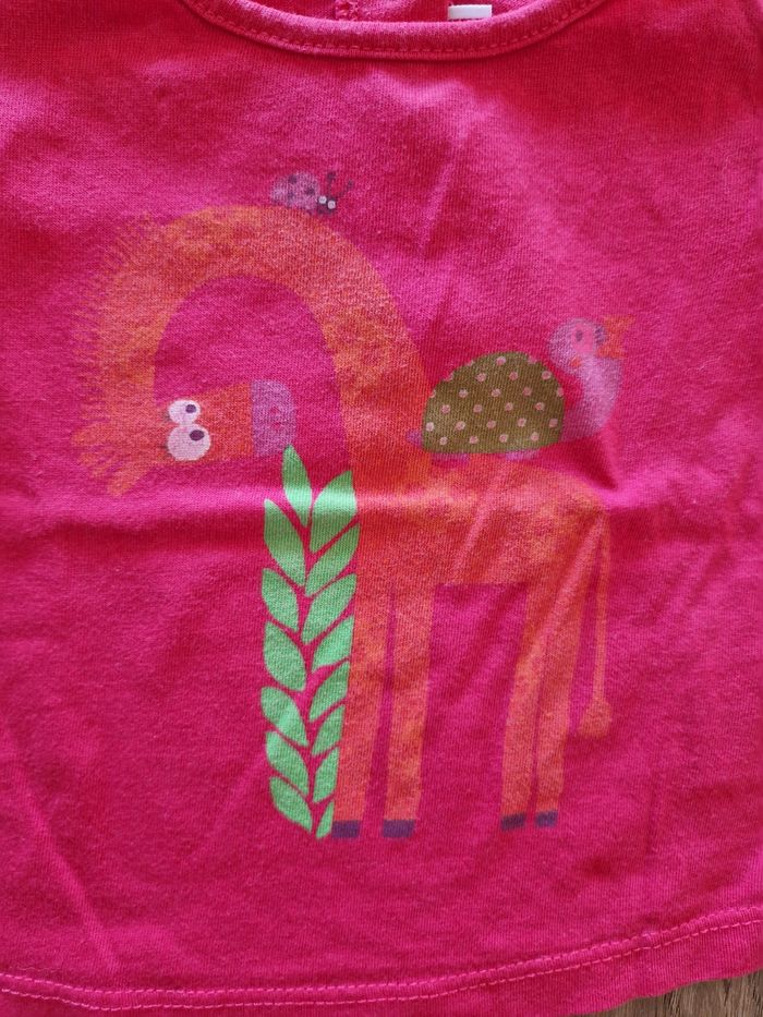 Bonjour, Vend un tee-shirt manches courtes, taille 3 mois, de la marque DPAM, avec pressions dans le dos. #Tee-shirt #ManchesCourtes #3Mois #Rose #Pression #Girafe #Oiseau #Orange