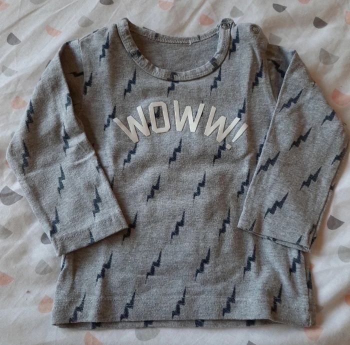 Lot comprenant : - un tee-shirt manches longues assez épais gris avec motif en relief (photo 2) - très bon état mais étiquettes coupées ⚡ - un jogging gris foncé avec bandes blanches aux chevilles - très bon état